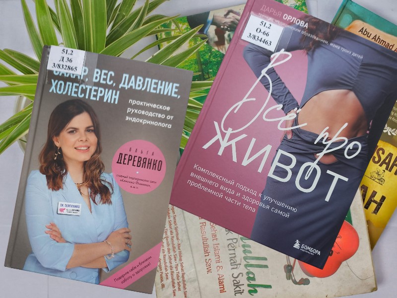 Книги «Сахар, вес, давление. Холестерин» и тренер с медицинским образованием О. Деревянко и «Все про живот. Комплексный подход к улучшению внешнего вида и здоровья самой проблемной части тела» Д. Орловой находятся в фонде Государственной научной библиотеки Кузбасса им. В.Д. Федорова. Взять их для чтения можно в читальном зале отдела «Центр социальной, правовой и технической информации».